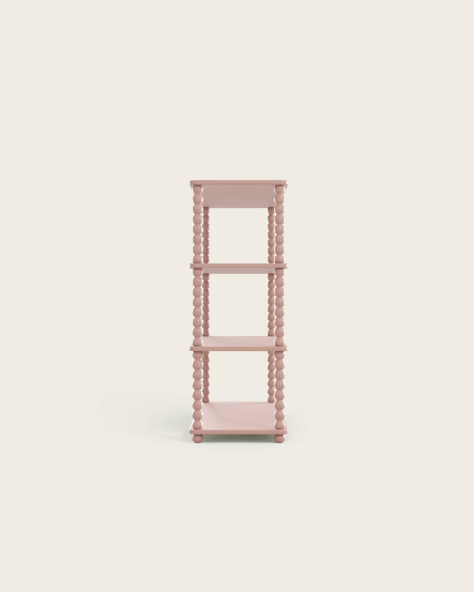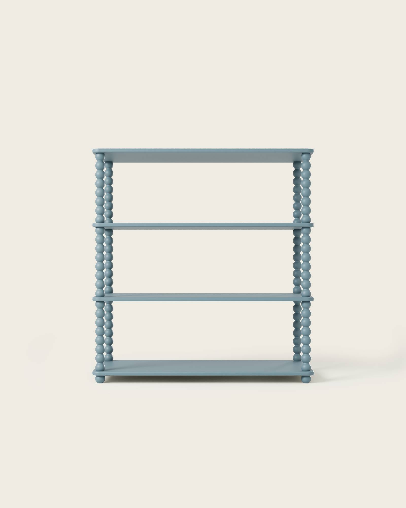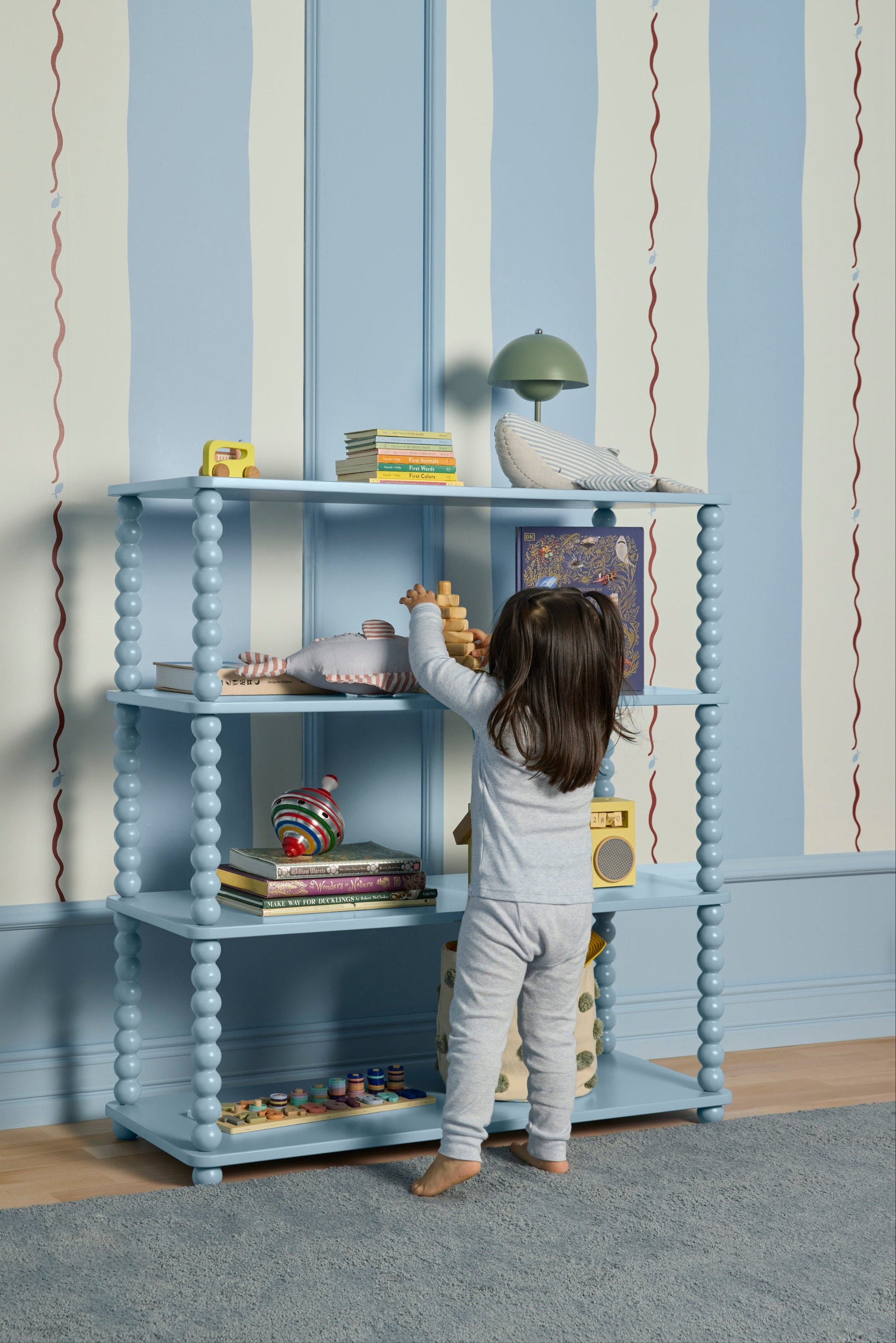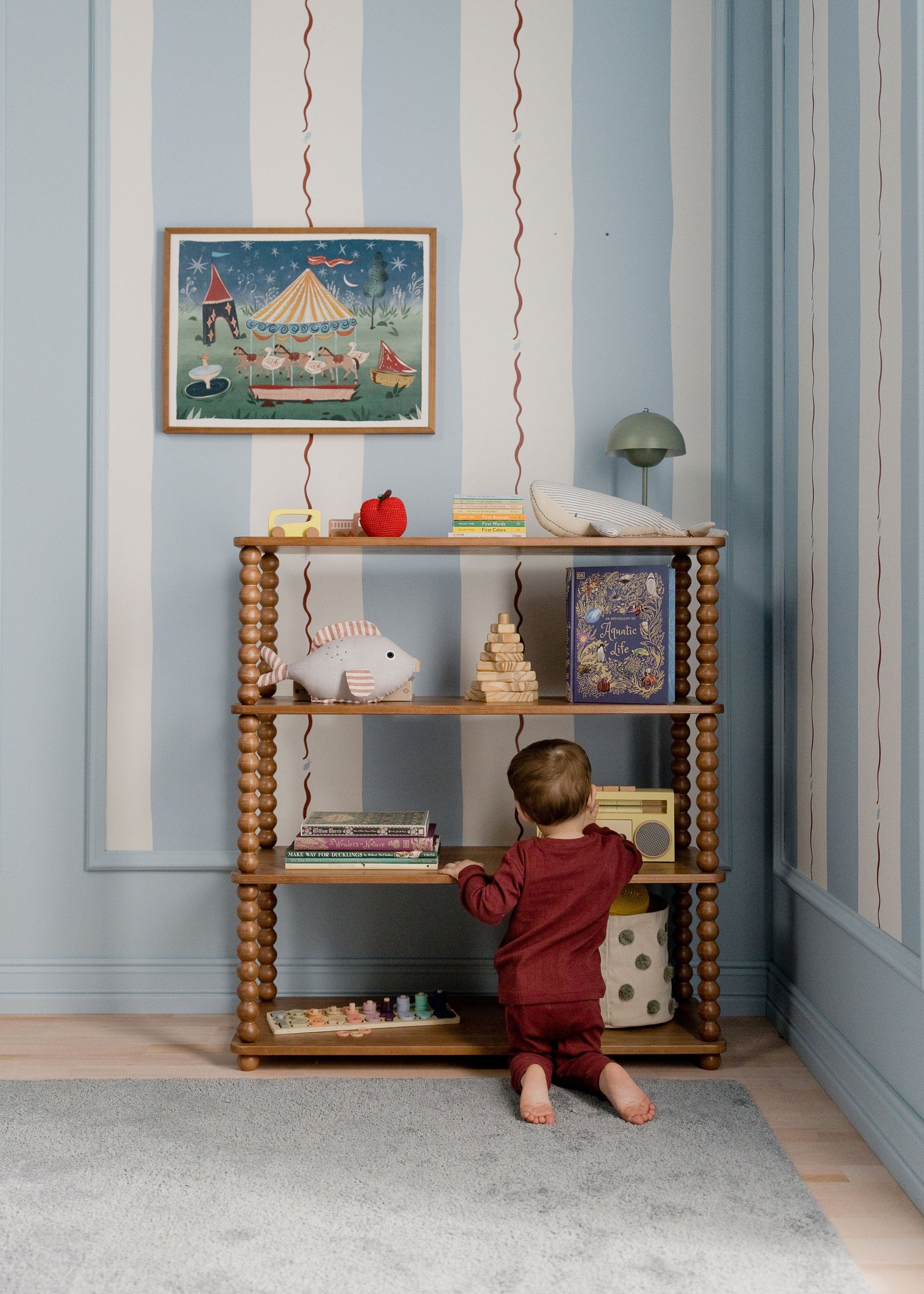 Une étagère qui a une histoire. Ce meuble intemporel est conçu pour accueillir tous leurs trésors, des livres préférés aux jouets préférés. Sa structure ouverte et sa hauteur idéale invitent les plus petits à explorer, tandis que les barreaux en bois tourné ajoutent une touche classique et traditionnelle. Ses lignes épurées lui confèrent un style léger et moderne, qui s'intègre harmonieusement dans n'importe quelle pièce.