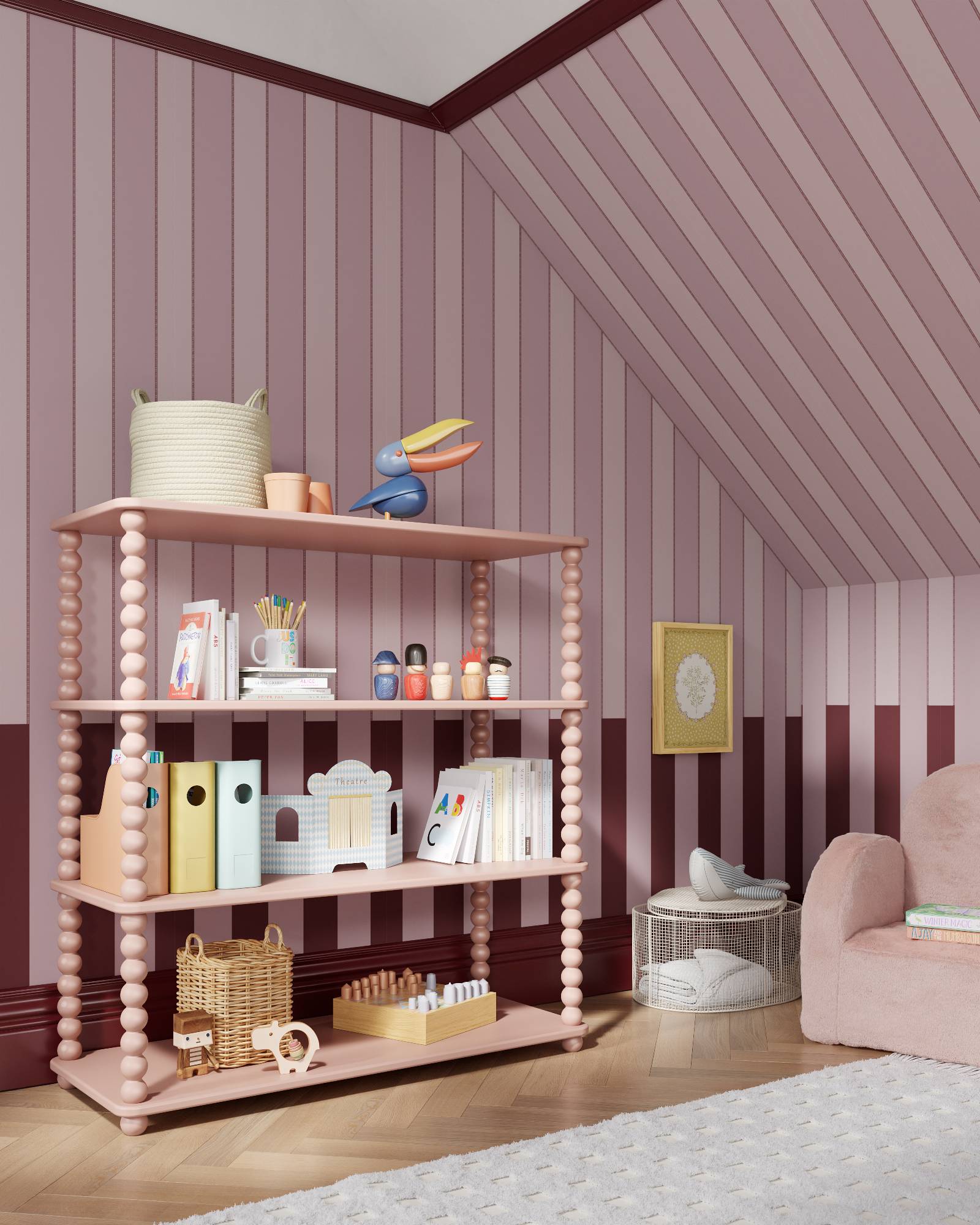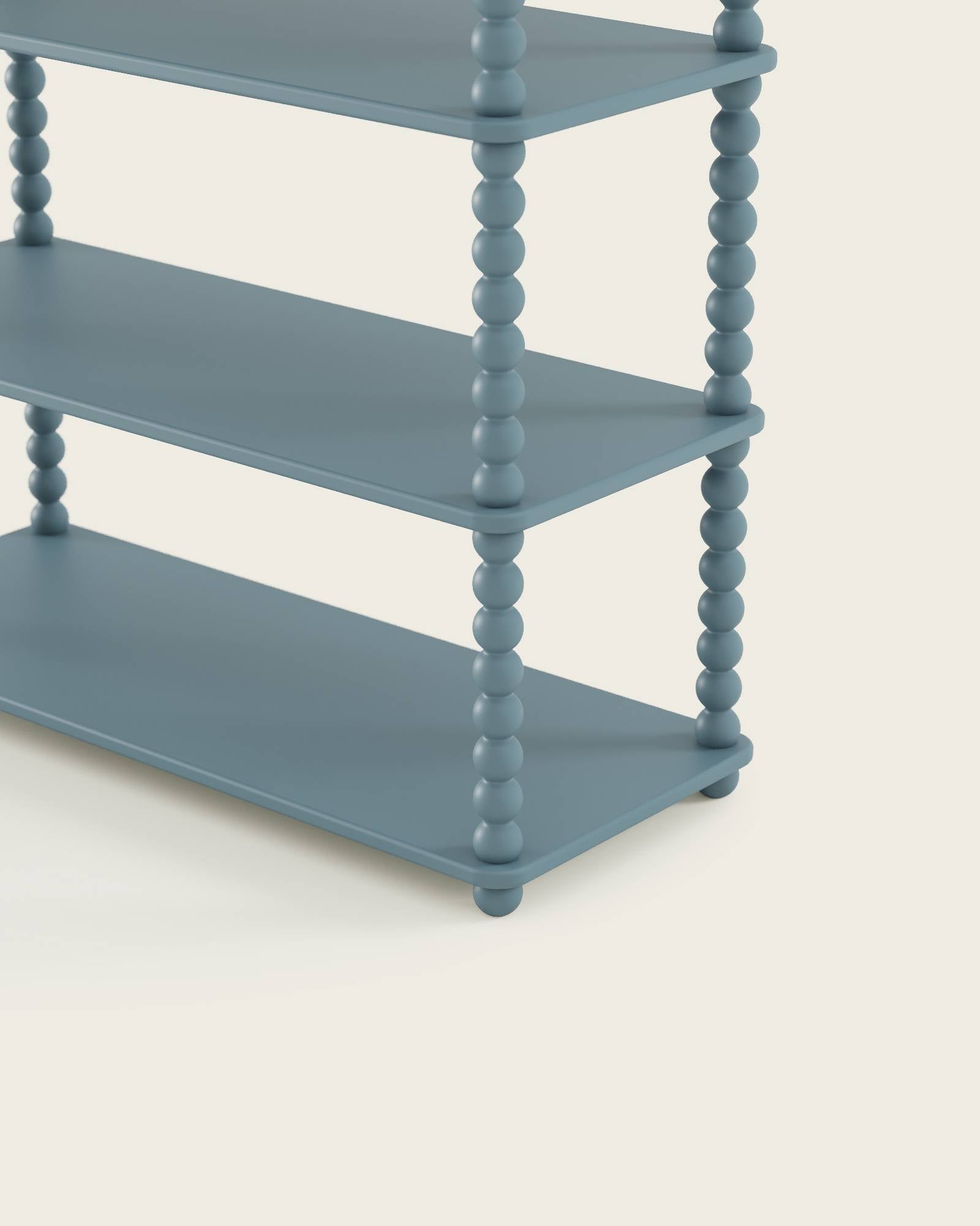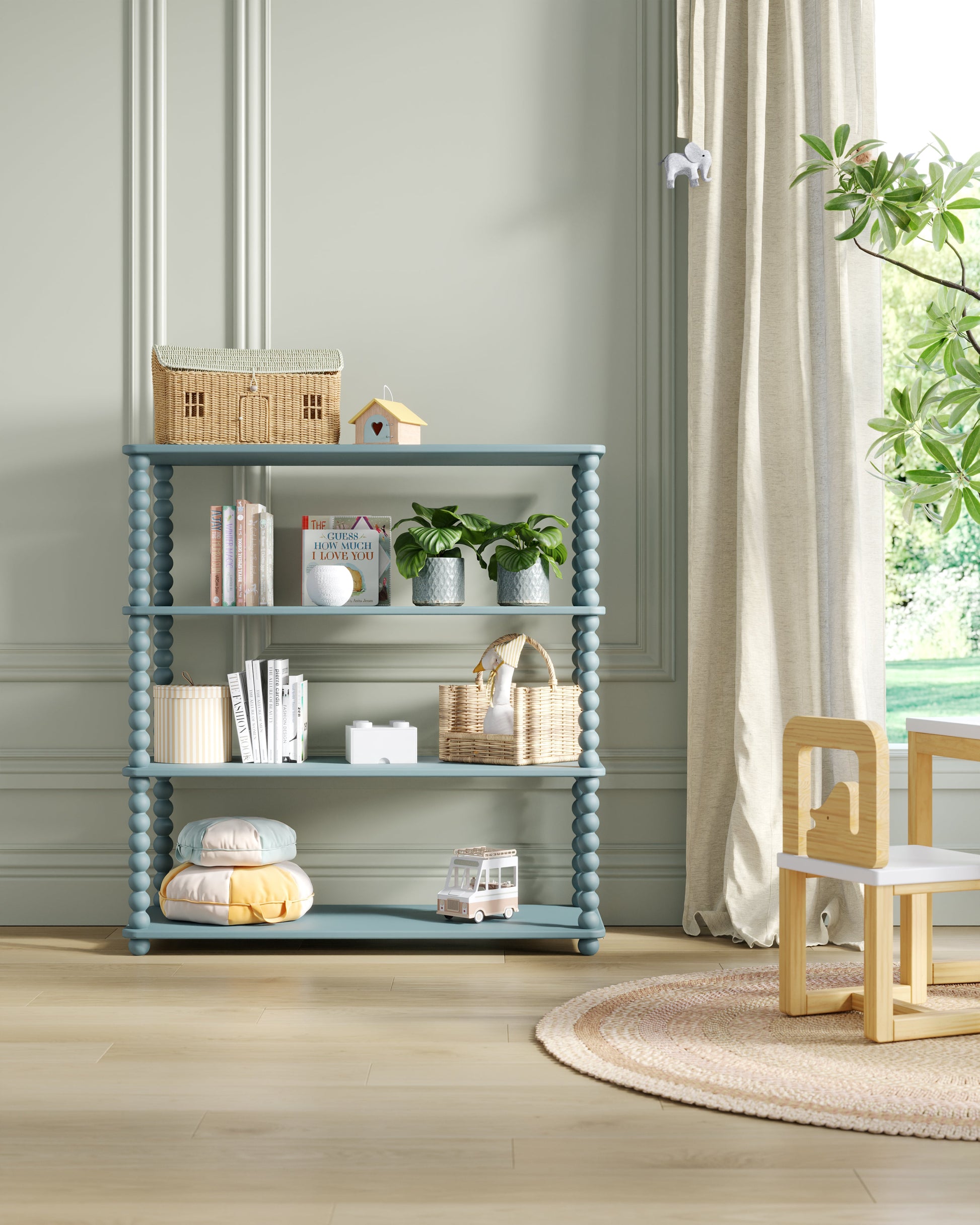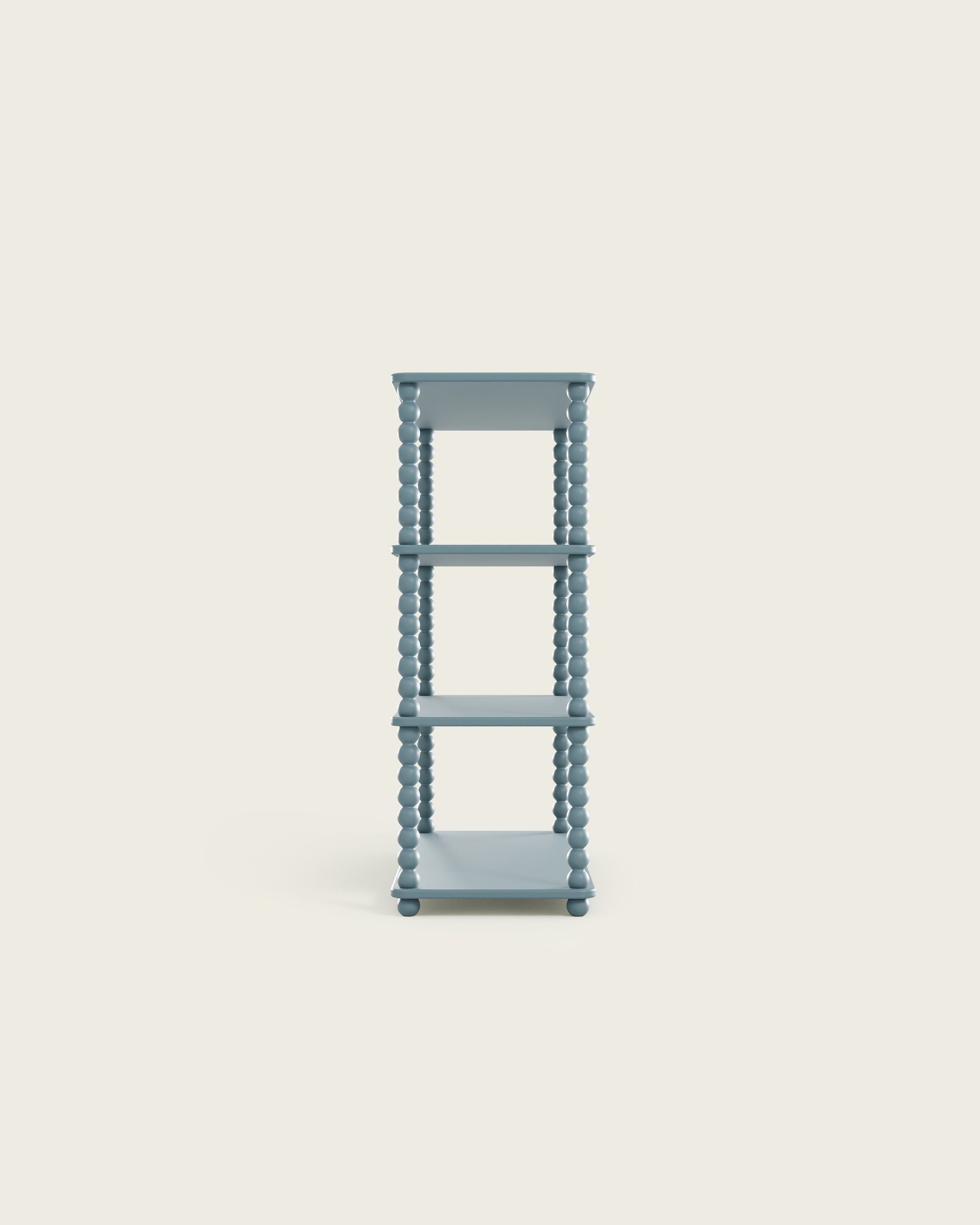 Une étagère qui a une histoire. Ce meuble intemporel est conçu pour accueillir tous leurs trésors, des livres préférés aux jouets préférés. Sa structure ouverte et sa hauteur idéale invitent les plus petits à explorer, tandis que les barreaux en bois tourné ajoutent une touche classique et traditionnelle. Ses lignes épurées lui confèrent un style léger et moderne, qui s'intègre harmonieusement dans n'importe quelle pièce.