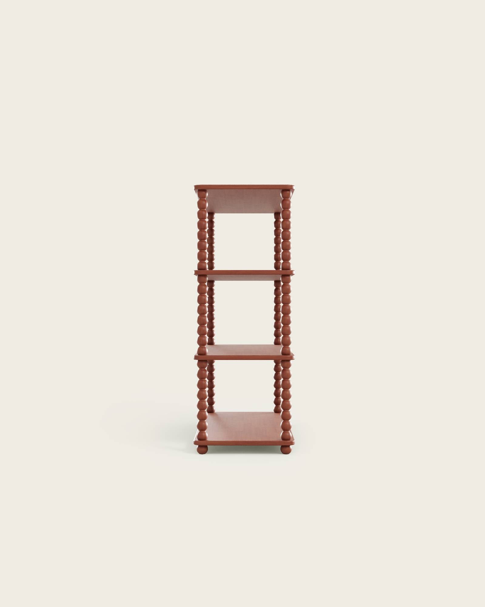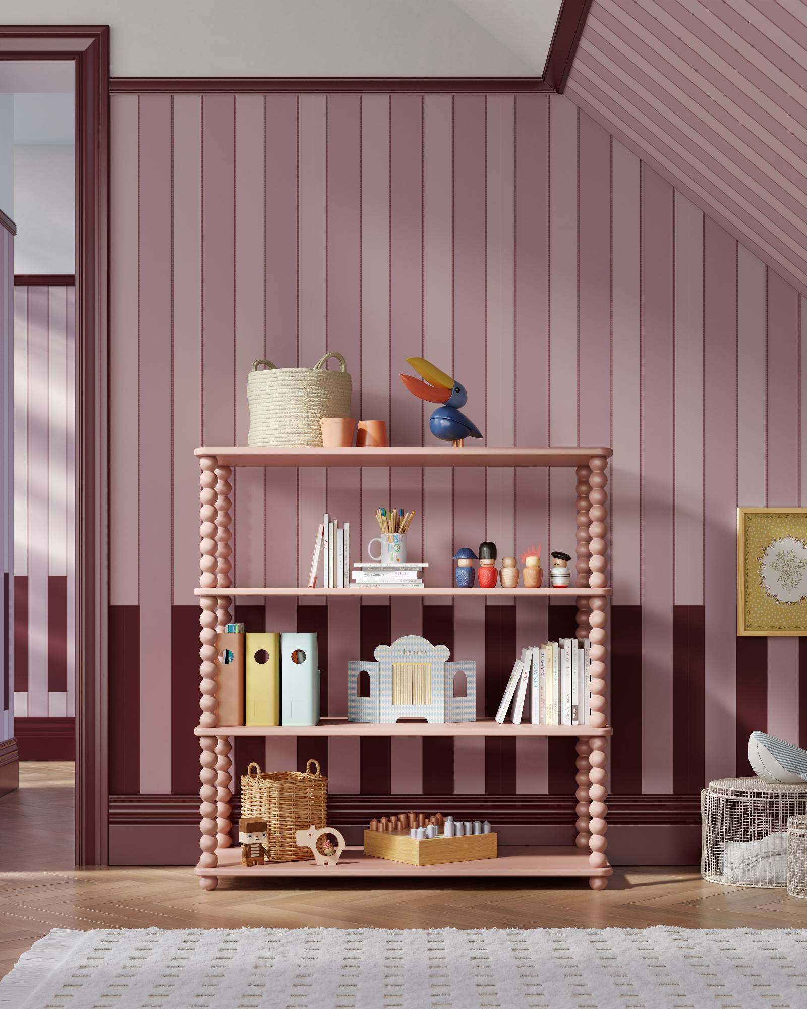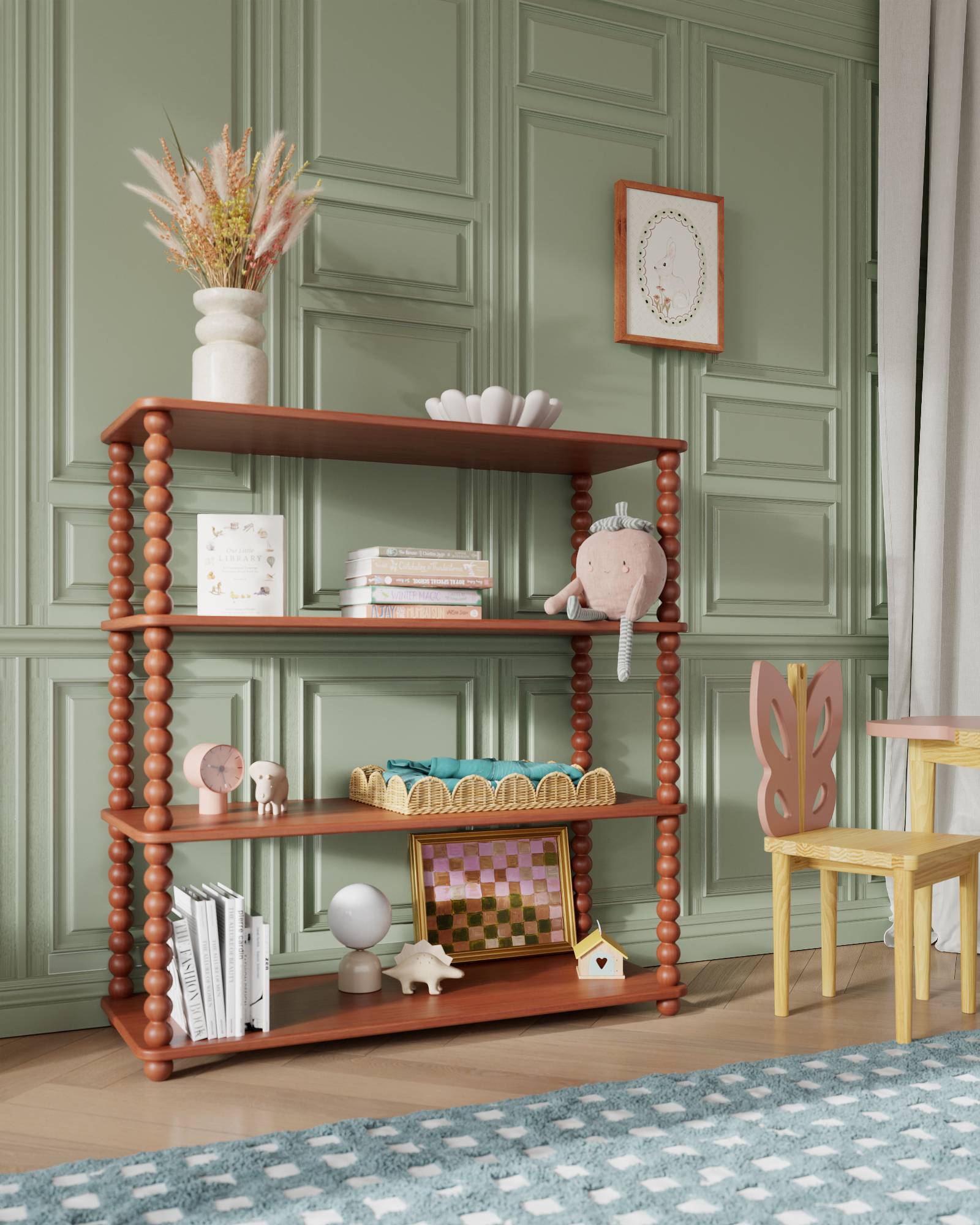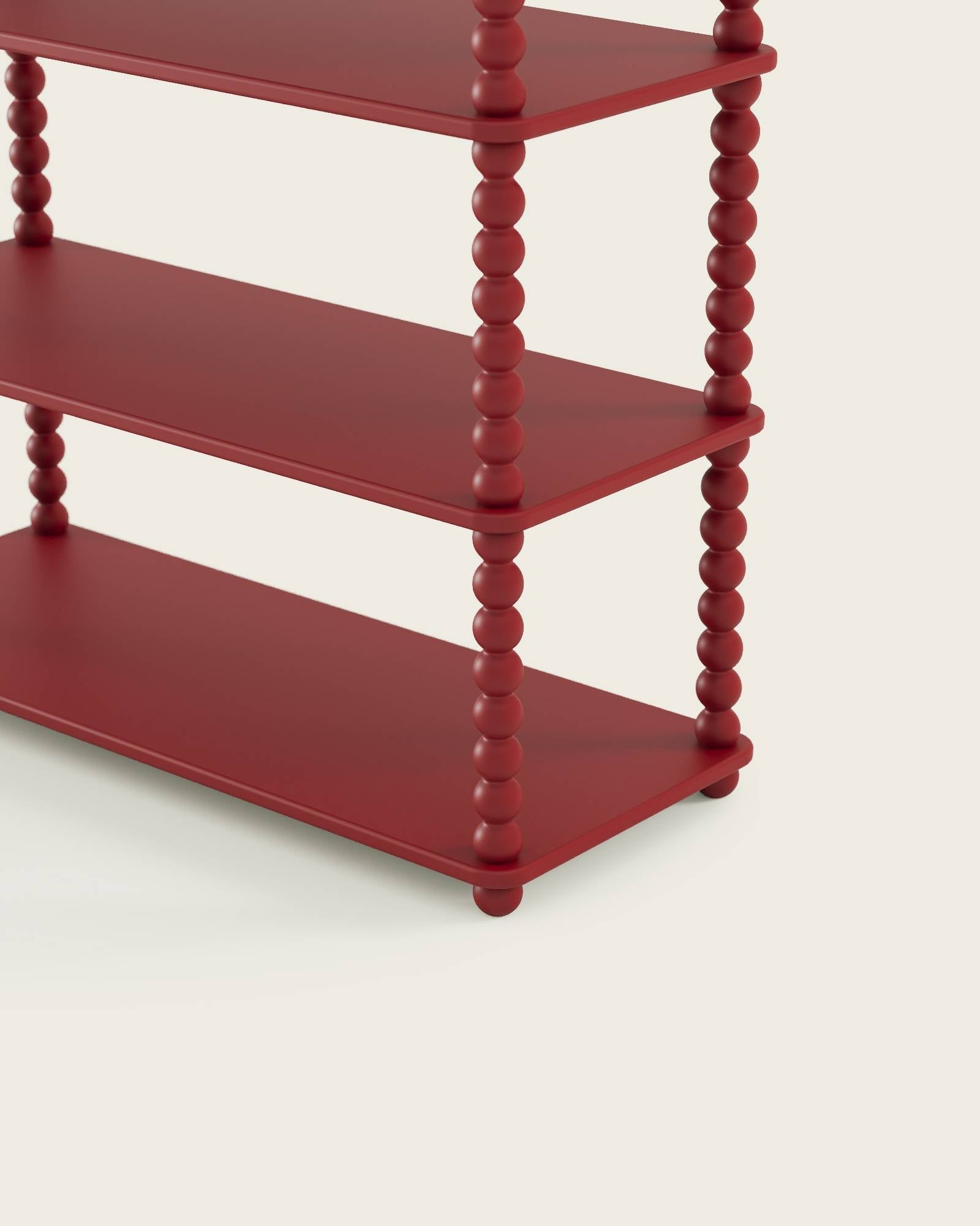 Une étagère qui a une histoire. Ce meuble intemporel est conçu pour accueillir tous leurs trésors, des livres préférés aux jouets préférés. Sa structure ouverte et sa hauteur idéale invitent les plus petits à explorer, tandis que les barreaux en bois tourné ajoutent une touche classique et traditionnelle. Ses lignes épurées lui confèrent un style léger et moderne, qui s'intègre harmonieusement dans n'importe quelle pièce.
