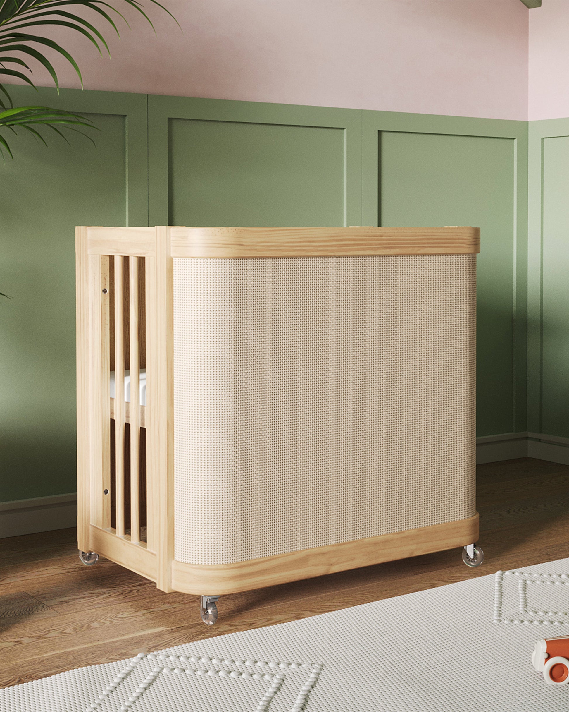 Version balnéaire de notre best-seller, le lit bébé 3-en-1 Island Wave arbore de ravissants détails en rotin. Inspiré par le mouvement de l'océan, il se transforme en mini-lit, en lit bébé standard, puis en lit enfant. Ses roulettes verrouillables permettent de le déplacer facilement d'une pièce à l'autre en toute sécurité.