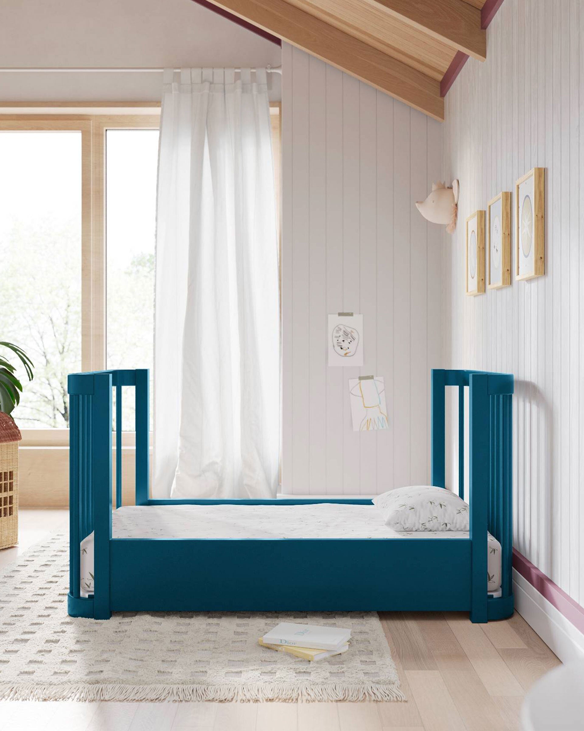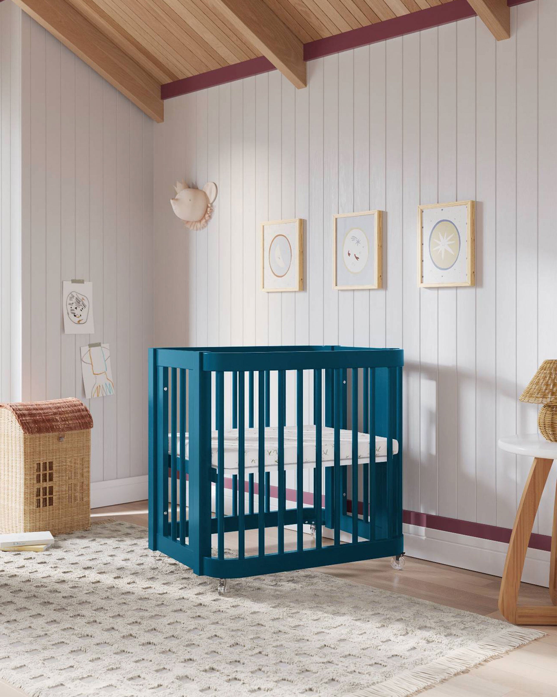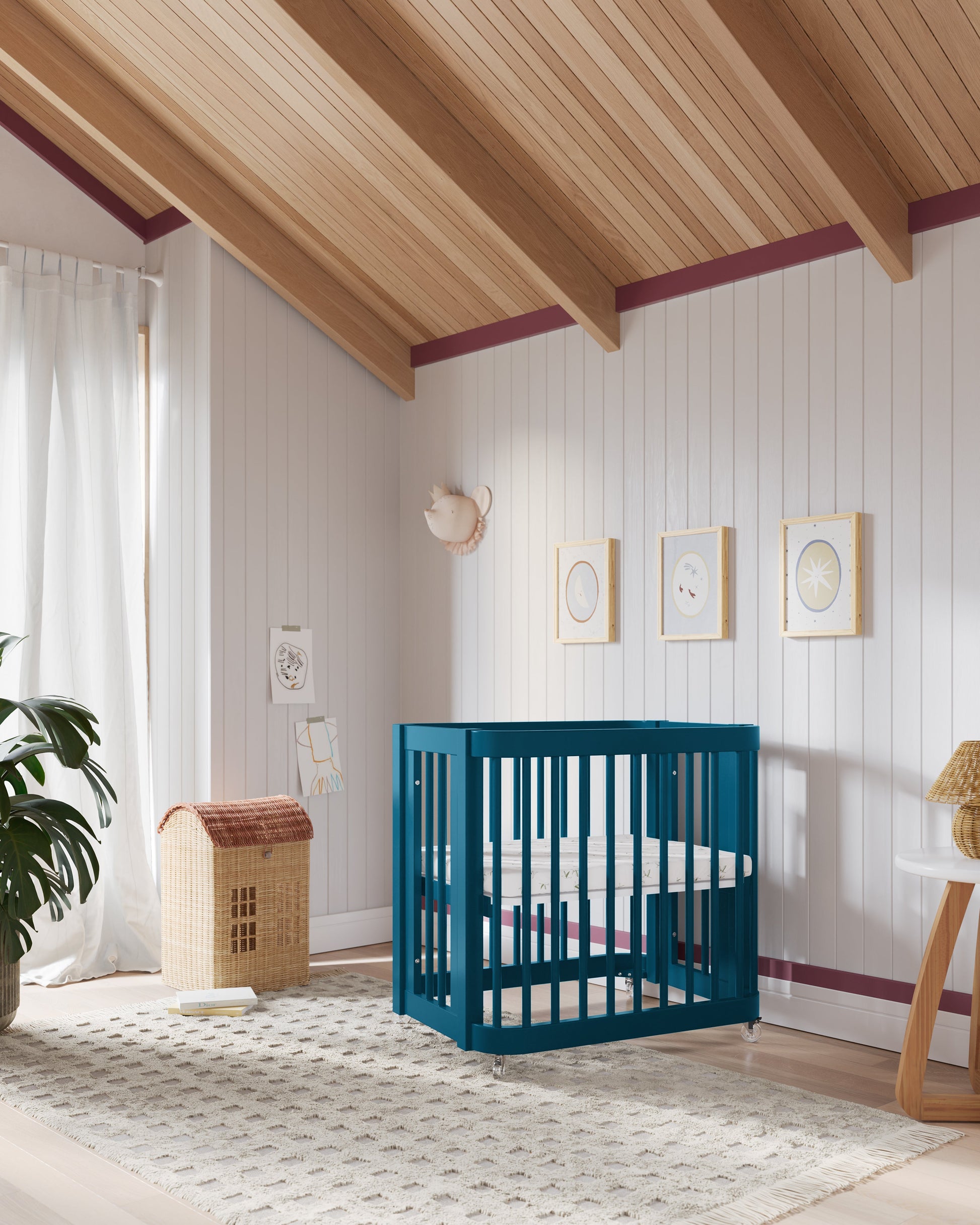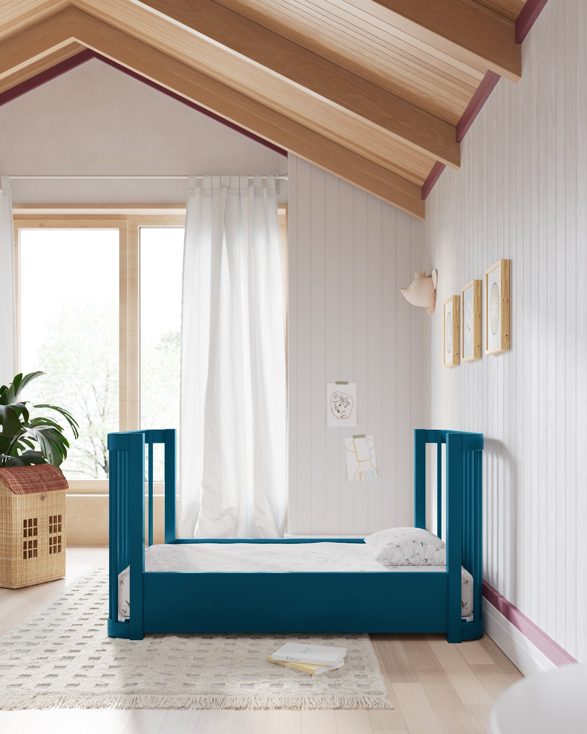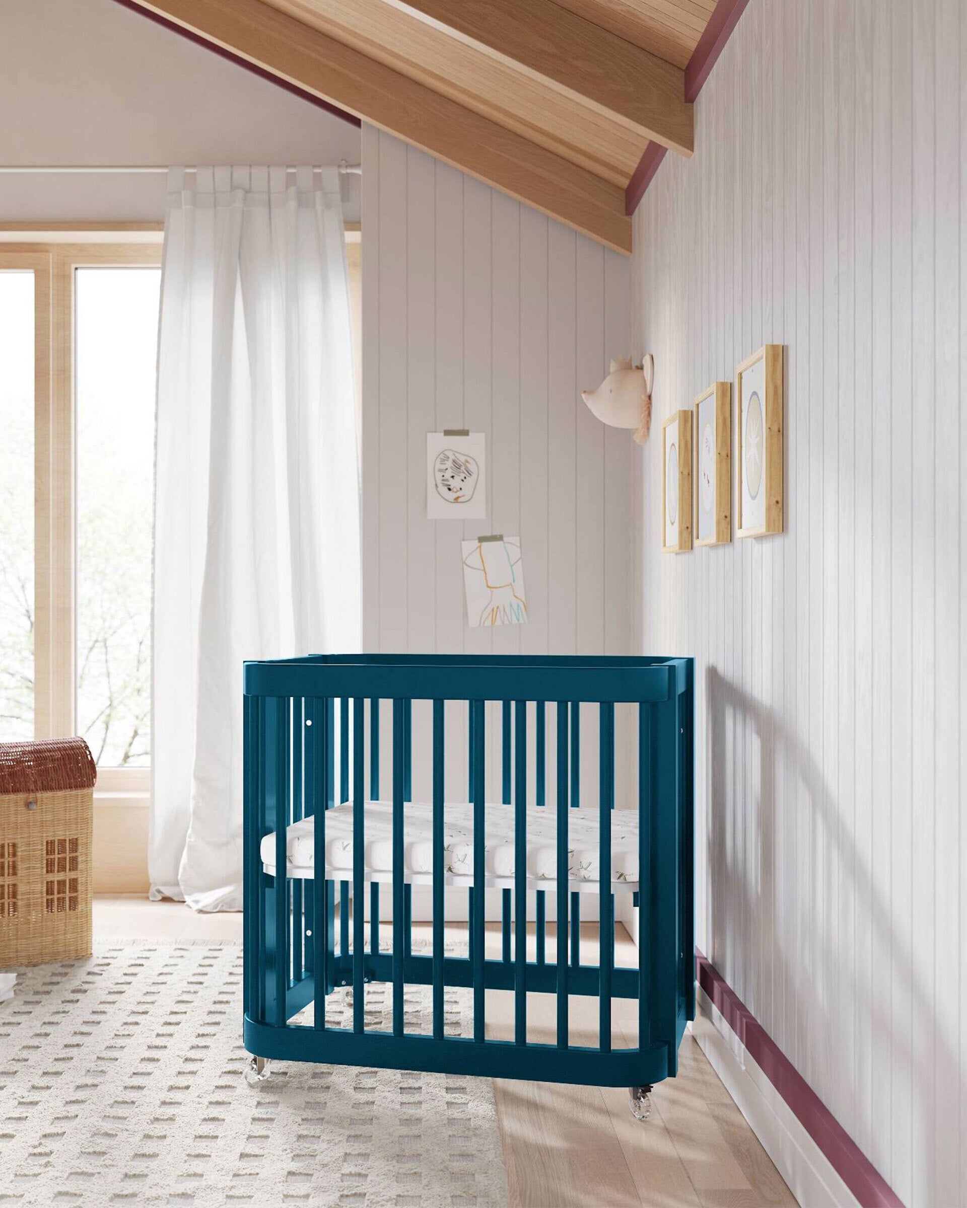 Notre lit bébé 3-en-1 Wave, un best-seller, arbore un nouveau look audacieux qui apporte une touche de couleur éclatante à la chambre de bébé. Inspiré par le mouvement de l'océan, ce modèle moderne se transforme de mini-lit en lit bébé standard, puis en lit enfant, accompagnant ainsi votre enfant à chaque étape de sa croissance. Bonus : il est certifié Greenguard Gold pour un sommeil plus sain.