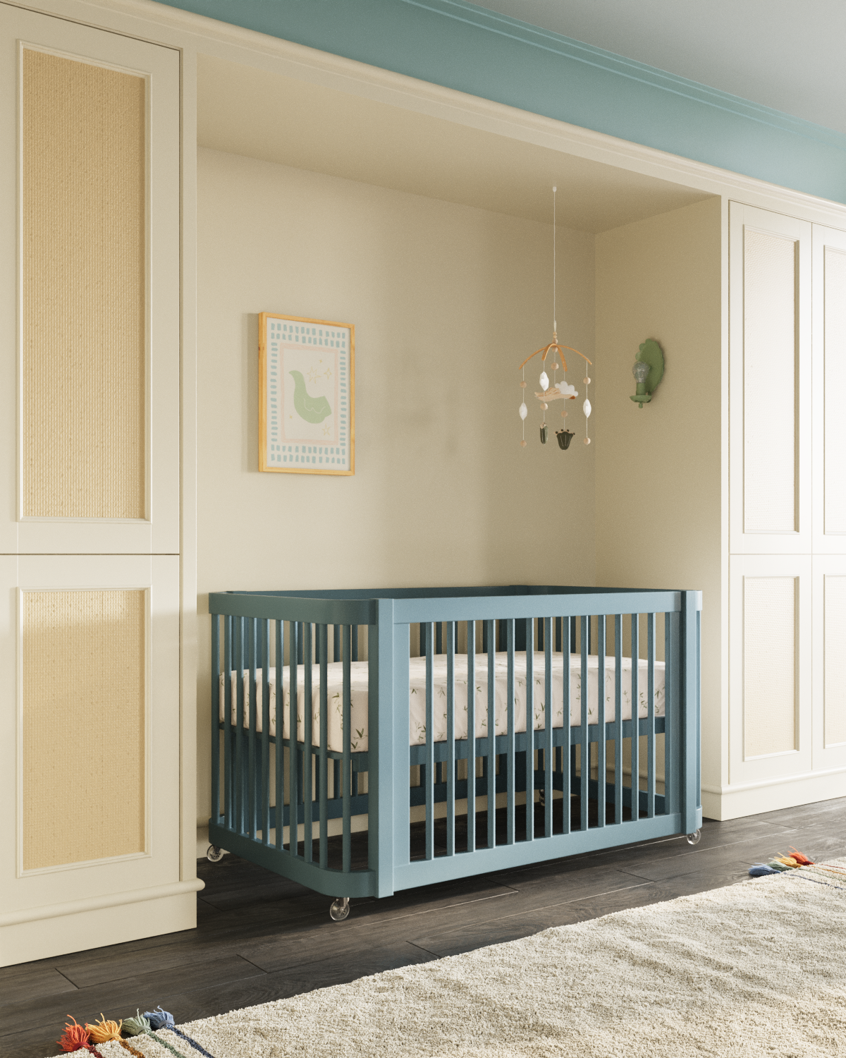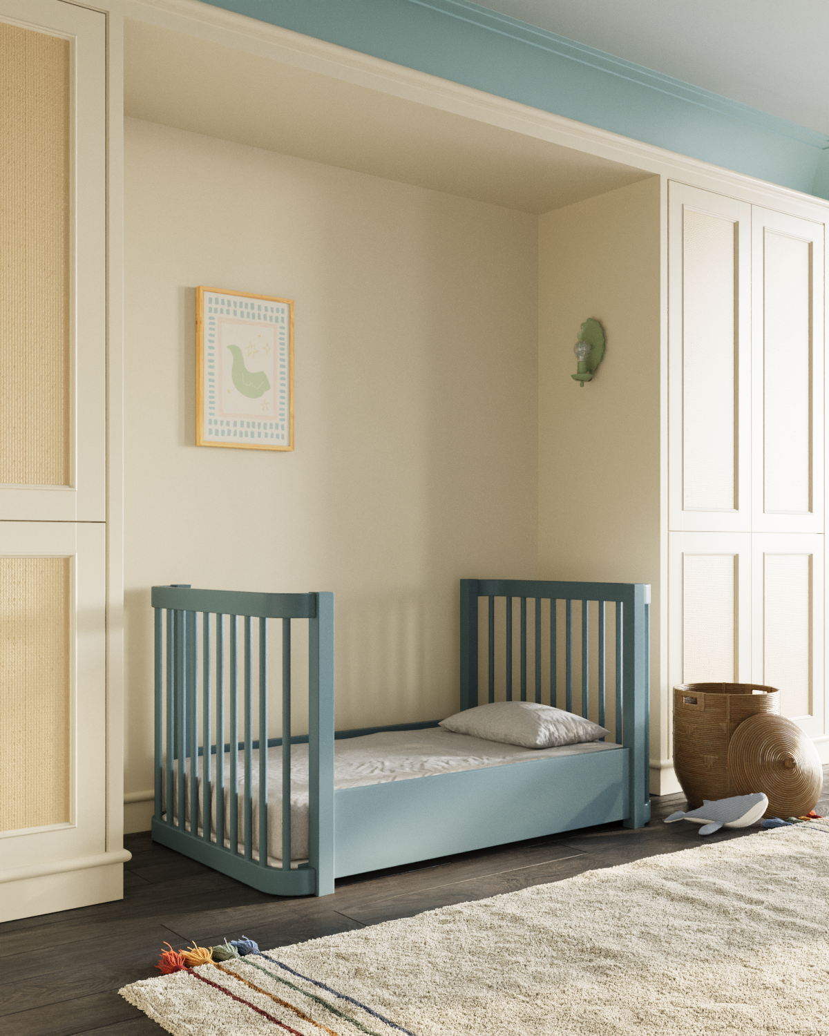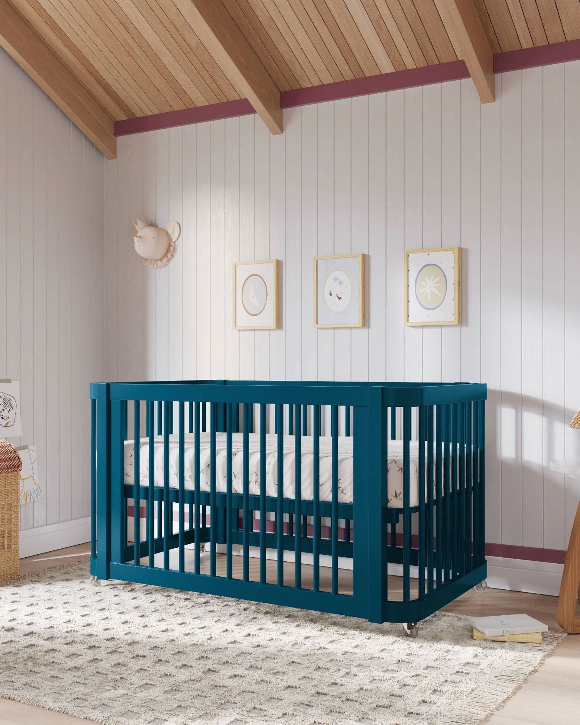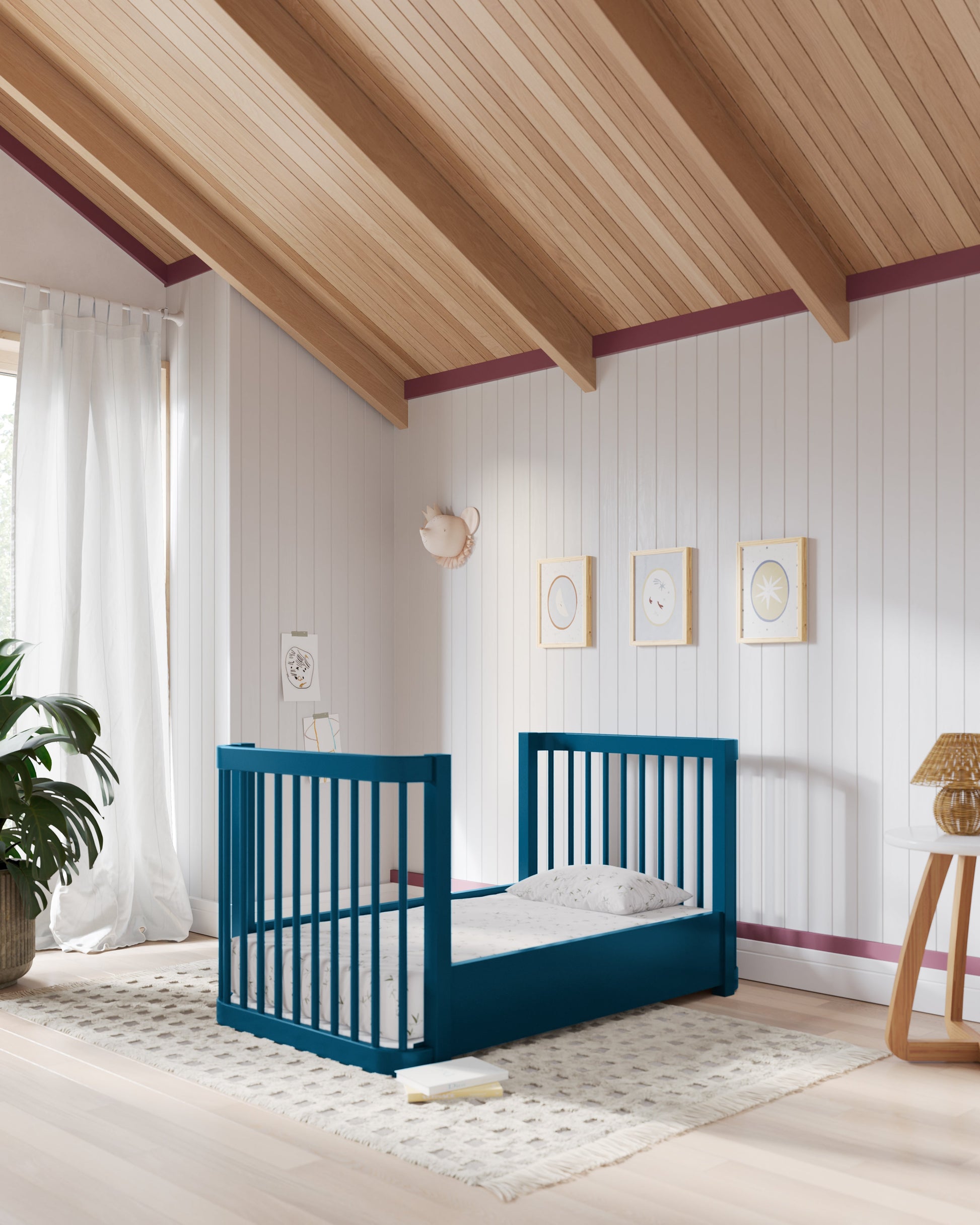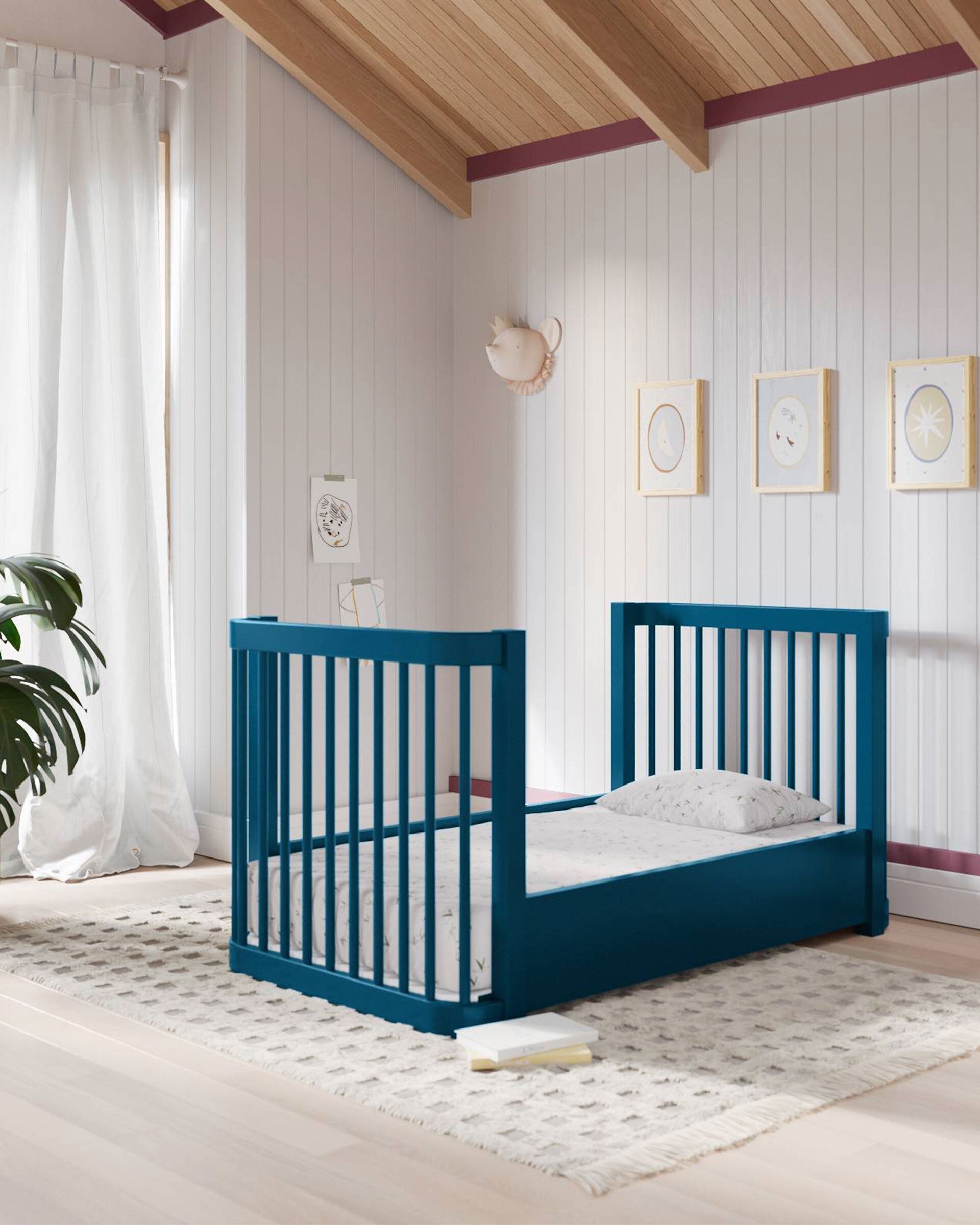Notre lit bébé 3-en-1 Wave, un best-seller, arbore un nouveau look audacieux qui apporte une touche de couleur éclatante à la chambre de bébé. Inspiré par le mouvement de l'océan, ce modèle moderne se transforme de mini-lit en lit bébé standard, puis en lit enfant, accompagnant ainsi votre enfant à chaque étape de sa croissance. Bonus : il est certifié Greenguard Gold pour un sommeil plus sain.
