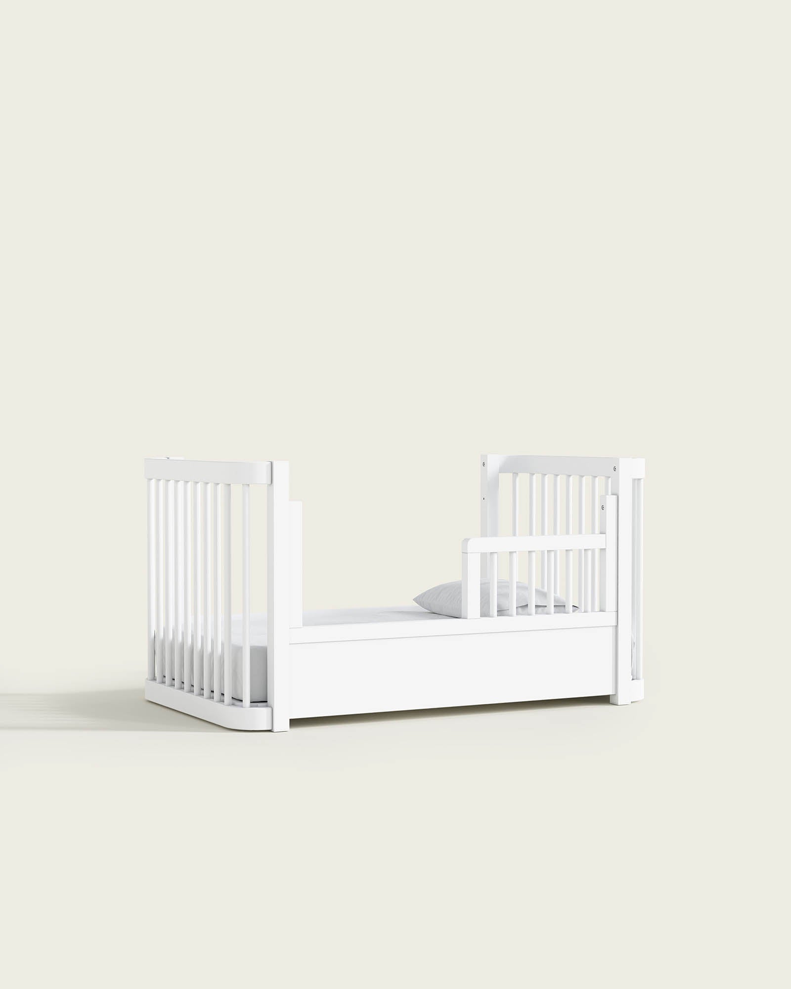 Une barrière de lit pour tout-petit conçue pour faciliter la transition de votre enfant vers un lit de grand. Facile à fixer sur le côté de notre lit Wave, elle se retire tout aussi facilement sans l'abîmer une fois que votre enfant est prêt. Chaque lit peut accueillir jusqu'à deux barrières, une de chaque côté.